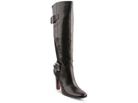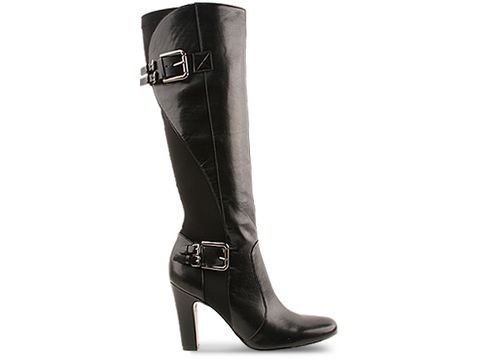 Show a little curve. Show it off with the Jessica Simpson Kaptiva. This lovely boot-pump will maximize your leggy assets with a sturdy heel post and a tall shaft. Smooth leatherlike vinyl creates lovely front and side panels, which make way for a delightful almond-shaped toe. To give the illusion of curves, a panel of smooth elasticized material makes up the back of the calf, intersecting with the outstep panel in a wavy manner. Triple buckles sit at the ankle and at the top of the shaft for a little extra shine and texture. Padded footbed. Synthetic upp! er. Nonskid outsole. 3 3/4" heel, 15 1/2" shaft height, 14" circumference.
